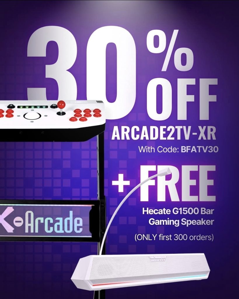 30% OFF + Free sound bar | X-Arcade Offer November 12, 2025 Woah don’t miss out! 30% off + $300 gaming speaker with mic! Deal of the year, Black Friday has started! Code: BFATV30 Link: https://shop.xgaming.com/?sca_ref=9194048.wI8ge7NJJHv29 Tags:30%, Bar, Free, homearcade, sale, xarcade