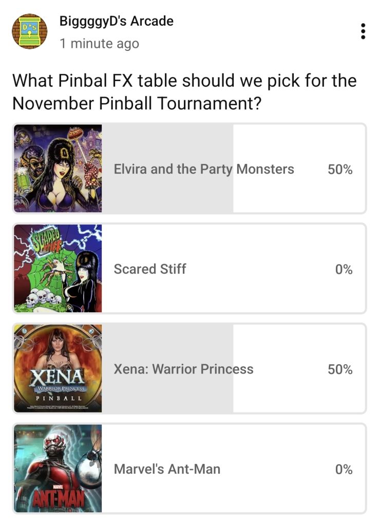 Vote in the poll to pick the next table we select for the November Pinball Tournament: CLICK HERE